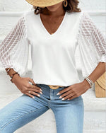 Top Blonde Hæklet Sammensyning Lange Ærmer