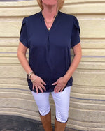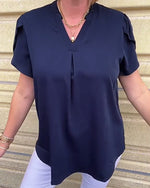 Bluse Ensfarvet V-Hals Plisseret Alsidig