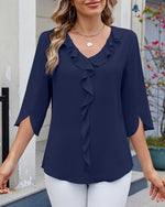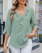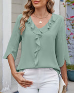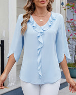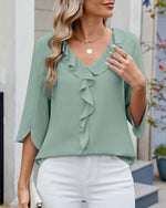 Bluse Halværmet Med Flæser Ensfarvet Afslappet