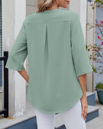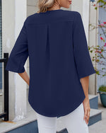 SPECIFIKATIONER Top type: Bluser Stil: Afslappet Materiale: Bomuldsblanding Lejlighed: Daglig Halsudskæring: V-udskæring Mønstertype: Ensfarvet Ærmetype: Vidærmet Ærmelængde: Trekvartærmet Pasform: Almindelig Sæson/årstid: Forår,Sommer Detaljer: Gennemsigtig Pakken inkluderer: 1 x Bluse STØRRELSESTABEL (cm) Størrelse Buste Længde S 97 65 ...