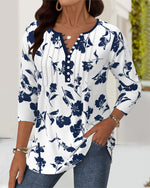 SPECIFIKATIONER Top type: Bluser Stil: Afslappet Materiale: Bomuldsblanding Lejlighed: Daglig Halsudskæring: V-udskæring Mønstertype: Tryk Ærmetype: Almindeligt ærme Ærmelængde: Ni-punkts-ærmer Pasform: Almindelig Sæson/årstid: Forår,Sommer Detaljer: Patchwork,Knapper,Udhulende Pakken inkluderer: 1 x Bluse STØRRELSESTABEL (cm) Størrelse Bust...