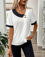 SPECIFIKATIONER Top type: Bluser Stil: Afslappet Materiale: Bomuldsblanding Lejlighed: Daglig Halsudskæring: V-udskæring Mønstertype: Ensfarvet Ærmetype: Almindeligt ærme Ærmelængde: Kortærmet Pasform: Almindelig Sæson/årstid: Forår,Sommer Detaljer: Patchwork,Knapper,Snøre Pakken inkluderer: 1 x Bluse STØRRELSESTABEL (cm) Størrelse Buste Læn...