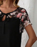 SPECIFIKATIONER Top type: Bluser Stil: Afslappet Materiale: Bomuldsblanding Lejlighed: Daglig Halsudskæring: Rund hals Mønstertype: Blomster-(garment type),Tryk Ærmetype: Pjuskærmer Ærmelængde: Kortærmet Pasform: Almindelig Sæson/årstid: Forår,Sommer Detaljer: Patchwork,Pjusket Pakken inkluderer: 1 x Bluse STØRRELSESTABEL (cm) Størrelse Bust...