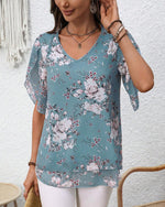 SPECIFIKATIONER Top type: Bluser Stil: Afslappet Materiale: Bomuldsblanding Lejlighed: Daglig Halsudskæring: V-udskæring Mønstertype: Tryk Ærmetype: Almindeligt ærme Ærmelængde: Kortærmet Pasform: Almindelig Sæson/årstid: Forår,Sommer Detaljer: Uregelmæssig Pakken inkluderer: 1 x Bluse STØRRELSESTABEL (cm) Størrelse Buste Længde S 92 65 ...