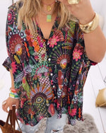 SPECIFIKATIONER Top type: Bluser Stil: Afslappet Materiale: Bomuldsblanding Lejlighed: Daglig Halsudskæring: V-udskæring Mønstertype: Tryk Ærmetype: Almindeligt ærme Ærmelængde: Ni-punkts-ærmer Pasform: Almindelig Sæson/årstid: Forår,Sommer Detaljer: Patchwork,Knapper,Udhulende Pakken inkluderer: 1 x Bluse STØRRELSESTABEL (cm) Størrelse Bust...