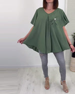 SPECIFIKATIONER Top type: Bluser Stil: Afslappet Materiale: Bomuldsblanding Lejlighed: Daglig Halsudskæring: V-udskæring Mønstertype: Tryk Ærmetype: Kronbladærme Ærmelængde: Halve ærmer Pasform: Almindelig Sæson/årstid: Forår,Sommer Pakken inkluderer: 1 x Bluse STØRRELSESTABEL (cm) Størrelse Buste Længde S 97 65 M 101 66.5 L 105 68 X...