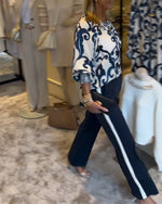 Bluse Med Revers Trekvartærme Kontrastfarve