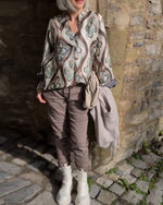 SPECIFIKATIONER Top type: Bluser Stil: Afslappet Materiale: Bomuldsblanding Lejlighed: Daglig Halsudskæring: Revers Mønstertype: Tryk Ærmetype: Almindeligt ærme Ærmelængde: Trekvartærmet Pasform: Almindelig Sæson/årstid: Forår,Sommer,Efterår Pakken inkluderer: 1 x Bluse STØRRELSESTABEL (cm) Størrelse Buste Længde S 92 65 M 96 66.5 L 10...
