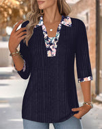 SPECIFIKATIONER Top type: Bluser Stil: Afslappet Materiale: Bomuldsblanding Lejlighed: Daglig Halsudskæring: V-udskæring Mønstertype: Tryk Ærmetype: Almindeligt ærme Ærmelængde: Ni-punkts-ærmer Pasform: Almindelig Sæson/årstid: Forår,Sommer Detaljer: Patchwork,Knapper,Udhulende Pakken inkluderer: 1 x Bluse STØRRELSESTABEL (cm) Størrelse Bust...