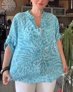 SPECIFIKATIONER Top type: Bluser Stil: Afslappet Materiale: Bomuldsblanding Lejlighed: Daglig Halsudskæring: V-udskæring Mønstertype: Tryk Ærmetype: Kronbladærme Ærmelængde: Halve ærmer Pasform: Almindelig Sæson/årstid: Forår,Sommer Pakken inkluderer: 1 x Bluse STØRRELSESTABEL (cm) Størrelse Buste Længde S 97 65 M 101 66.5 L 105 68 X...