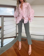 SPECIFIKATIONER Top type: Skjorte Stil: Afslappet Materiale: Bomuldsblanding Lejlighed: Daglig Halsudskæring: V-udskæring Mønstertype: Ensfarvet Ærmetype: Pjuskærmer Ærmelængde: Langærmet Pasform: Almindelig Sæson/årstid: Forår,Sommer,Efterår Detaljer: Knapper,Sløjfeknude Pakken inkluderer: 1 x Skjorte STØRRELSESTABEL (cm) Størrelse Buste Læ...