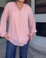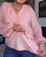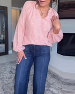 SPECIFIKATIONER Top type: Bluser Stil: Afslappet Materiale: Bomuldsblanding Lejlighed: Daglig Halsudskæring: V-udskæring Mønstertype: Ensfarvet Ærmetype: Pjuskærmer Ærmelængde: Langærmet Pasform: Almindelig Sæson/årstid: Forår,Sommer Detaljer: Pjusket Pakken inkluderer: 1 x Bluse STØRRELSESTABEL (cm) Størrelse Buste Længde S 97 65 M...