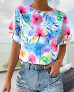 SPECIFIKATIONER Top type: Bluser Stil: Afslappet Materiale: Bomuldsblanding Lejlighed: Daglig Halsudskæring: V-udskæring Mønstertype: Tryk Ærmetype: Kronbladærme Ærmelængde: Halve ærmer Pasform: Almindelig Sæson/årstid: Forår,Sommer Pakken inkluderer: 1 x Bluse STØRRELSESTABEL (cm) Størrelse Buste Længde S 97 65 M 101 66.5 L 105 68 X...