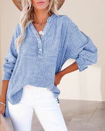 SPECIFIKATIONER Top type: Toppe Stil: Afslappet Materiale: Spandex,Polyester Lejlighed: Daglig Halsudskæring: V-udskæring Ærmetype: Almindeligt ærme Ærmelængde: Langærmet Pasform: Almindelig Sæson/årstid: Forår,Efterår Detaljer: Knapper,Rynket Pakken inkluderer: 1 x Top STØRRELSESTABEL (cm) Størrelse Buste Længde S 97 65 M 101 66.5 L 1...