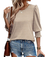 SPECIFIKATIONER Top type: Bluser Stil: Afslappet Materiale: Bomuldsblanding Lejlighed: Daglig Halsudskæring: Rund hals Mønstertype: Tryk Ærmetype: Puf-ærmer Ærmelængde: Halve ærmer Pasform: Almindelig Sæson/årstid: Forår,Sommer Pakken inkluderer: 1 x Bluse STØRRELSESTABEL (cm) Størrelse Buste Længde S 104 68 M 108 69.5 L 112 71 XL 11...