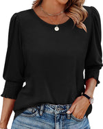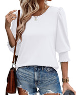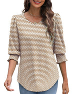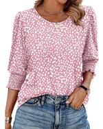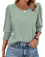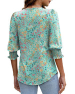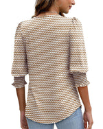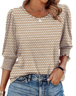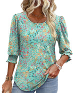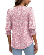 SPECIFIKATIONER Top type: Bluser Stil: Afslappet Materiale: Bomuldsblanding Lejlighed: Daglig Halsudskæring: Rund hals Mønstertype: Tryk Ærmetype: Almindeligt ærme Ærmelængde: Trekvartærmet Pasform: Almindelig Sæson/årstid: Forår,Sommer Detaljer: Knapper,Rynket Pakken inkluderer: 1 x Bluse STØRRELSESTABEL (cm) Størrelse Buste Længde S 97 6...