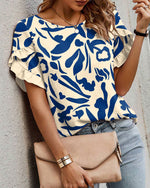 SPECIFIKATIONER Top type: Bluser Stil: Afslappet Materiale: Bomuldsblanding Lejlighed: Daglig Halsudskæring: V-udskæring Mønstertype: Tryk Ærmetype: Kronbladærme Ærmelængde: Halve ærmer Pasform: Almindelig Sæson/årstid: Forår,Sommer Pakken inkluderer: 1 x Bluse STØRRELSESTABEL (cm) Størrelse Buste Længde S 97 65 M 101 66.5 L 105 68 X...