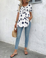 Bluse Rund Halsudskæring Korte Ærmer Trykt