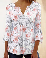 SPECIFIKATIONER Top type: Bluser Stil: Afslappet Materiale: Bomuldsblanding Lejlighed: Daglig Halsudskæring: V-udskæring Mønstertype: Tryk Ærmetype: Almindeligt ærme Ærmelængde: Ni-punkts-ærmer Pasform: Almindelig Sæson/årstid: Forår,Sommer Detaljer: Patchwork,Knapper,Udhulende Pakken inkluderer: 1 x Bluse STØRRELSESTABEL (cm) Størrelse Bust...