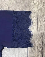 Bluse Rund Hals Blonde Hæklet Korte Ærmer