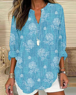 Bluse Kronbladsærmer V-Udskæring Printet