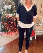 Top med kontrastfarvet v-halsudskæring