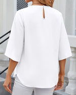 SPECIFIKATIONER Top type: Bluser Stil: Afslappet Materiale: Bomuldsblanding Lejlighed: Daglig Halsudskæring: V-udskæring Mønstertype: Ensfarvet Ærmetype: Flagermuse-ærmer Ærmelængde: Trekvartærmet Pasform: Almindelig Sæson/årstid: Forår,Sommer Detaljer: Patchwork,Udhulende Pakken inkluderer: 1 x Bluse STØRRELSESTABEL (cm) Størrelse Buste Læn...