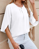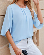 Bluse Med Revers Trekvartærme Kontrastfarve