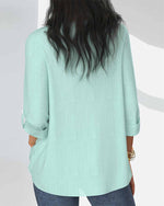 Bluse Med Revers Trekvartærme Kontrastfarve