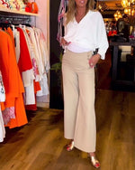 SPECIFIKATIONER Top type: Bluser Stil: Afslappet Materiale: Bomuldsblanding Lejlighed: Daglig Halsudskæring: V-udskæring Mønstertype: Ensfarvet Ærmetype: Pjuskærmer Ærmelængde: Langærmet Pasform: Almindelig Sæson/årstid: Forår,Sommer Detaljer: Pjusket Pakken inkluderer: 1 x Bluse STØRRELSESTABEL (cm) Størrelse Buste Længde S 97 65 M...