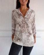 Bluse Kronbladsærmer V-Udskæring Printet