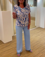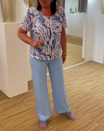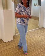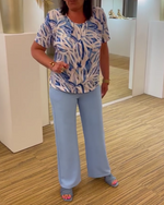 SPECIFIKATIONER Top type: Bluser Stil: Afslappet Materiale: Bomuldsblanding Lejlighed: Daglig Halsudskæring: V-udskæring Mønstertype: Tryk Ærmetype: Kronbladærme Ærmelængde: Halve ærmer Pasform: Almindelig Sæson/årstid: Forår,Sommer Pakken inkluderer: 1 x Bluse STØRRELSESTABEL (cm) Størrelse Buste Længde S 97 65 M 101 66.5 L 105 68 X...