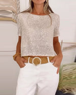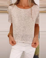 Bluse Rund Hals Blonde Hæklet Korte Ærmer