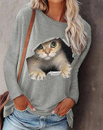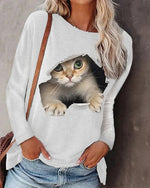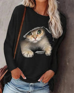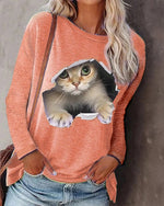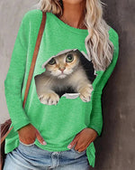 Langærmet top med katteprint