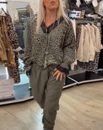 Stilfuld leopardprint bluse med blonde V-udskæring