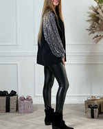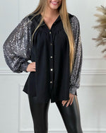 Patchwork skjorte med pailletter og knapper