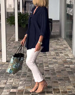 Bluse Med Revers Trekvartærme Kontrastfarve