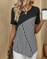 Rundhalset farveblokstribet bluse