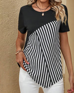 Bluse Rund hals Kontrast Kortærme