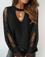 Bluse Rund Hals Blonde Hæklet Korte Ærmer