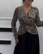 SPECIFIKATIONER Top type: Toppe Stil: Afslappet Materiale: Bomuldsblanding Lejlighed: Daglig Halsudskæring: V-udskæring Mønstertype: Leopard-print Ærmetype: Almindeligt ærme Ærmelængde: Langærmet Pasform: Almindelig Sæson/årstid: Forår,Sommer,Efterår Detaljer: Knapper,To falske stykker Pakken inkluderer: 1 x Top STØRRELSESTABEL (cm) Størrel...
