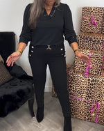Bluse Med Revers Trekvartærme Kontrastfarve