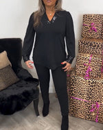 Øverste Hestesko Ærme V-Udskæring Kontrastfarve