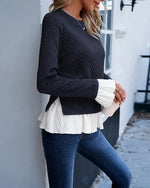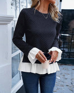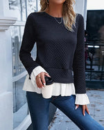 Top Blonde Hæklet Sammensyning Lange Ærmer
