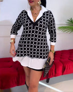 Bluse Uregelmæssig Faux To-del Tryk