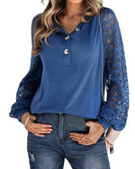 SPECIFIKATIONER Top type: Toppe Stil: Afslappet Materiale: Spandex,Polyester Lejlighed: Daglig Halsudskæring: V-udskæring Ærmetype: Almindeligt ærme Ærmelængde: Langærmet Pasform: Almindelig Sæson/årstid: Forår,Efterår Detaljer: Knapper,Rynket Pakken inkluderer: 1 x Top STØRRELSESTABEL (cm) Størrelse Buste Længde S 97 65 M 101 66.5 L 1...