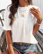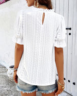 Bluse Rund Hals Blonde Hæklet Korte Ærmer