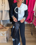 Top med V-udskæring og sort-hvid farveblok