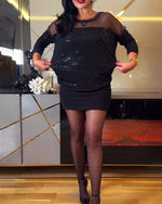 Top moderigtigt temperament med pailletter med rund hals