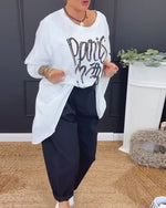 Top Rund Hals Uregelmæssig Bogstavtryk
